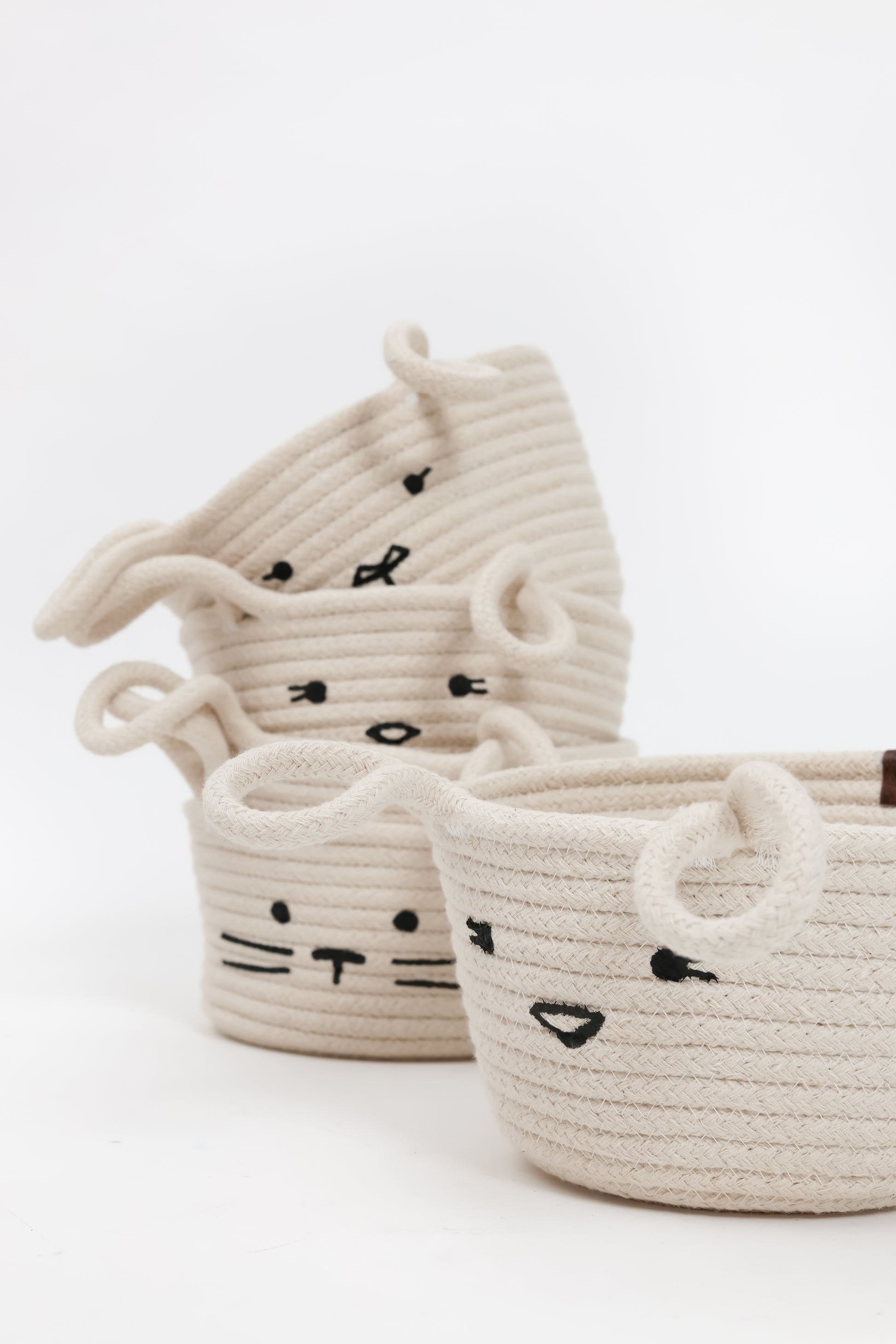 Canastos de Cuerda con Carita – Organizadores Infantiles Hechos a Mano
