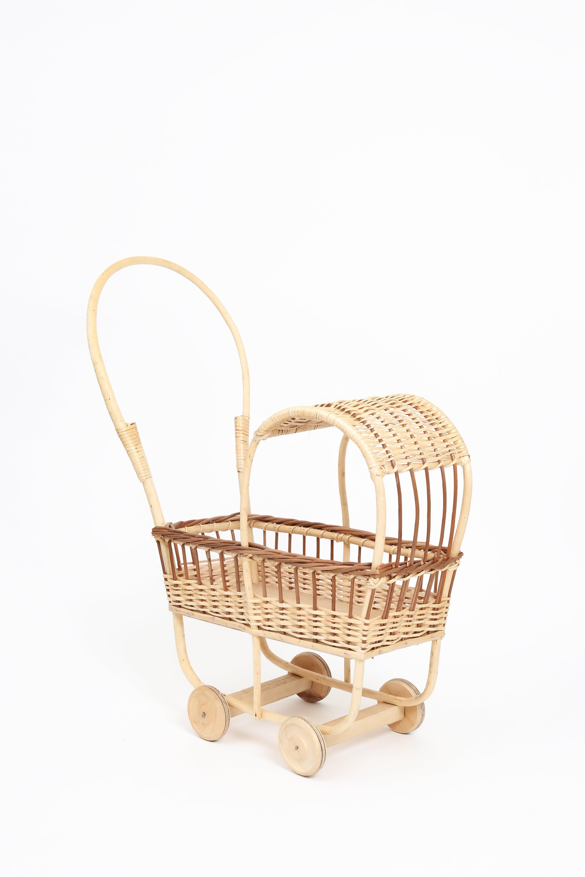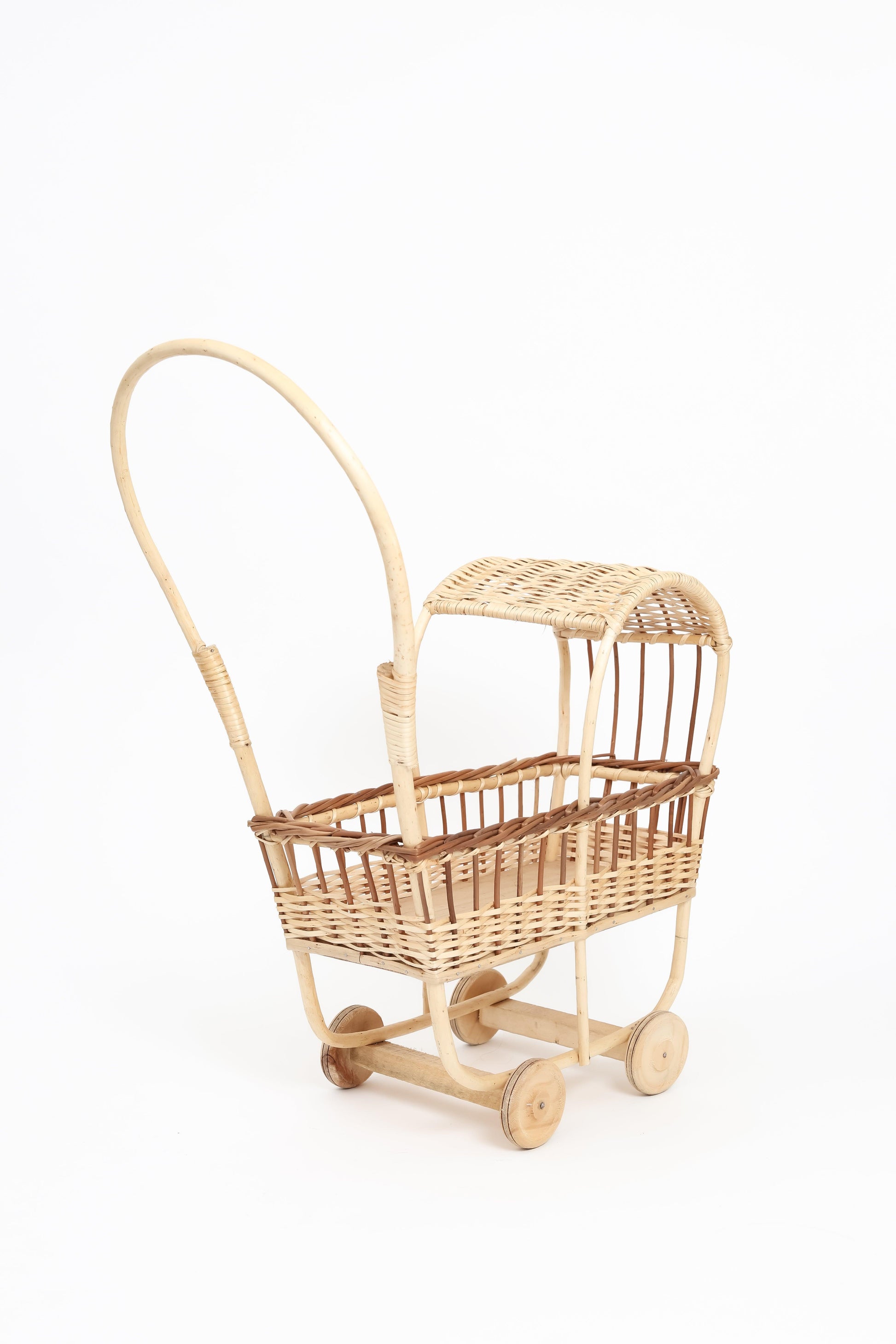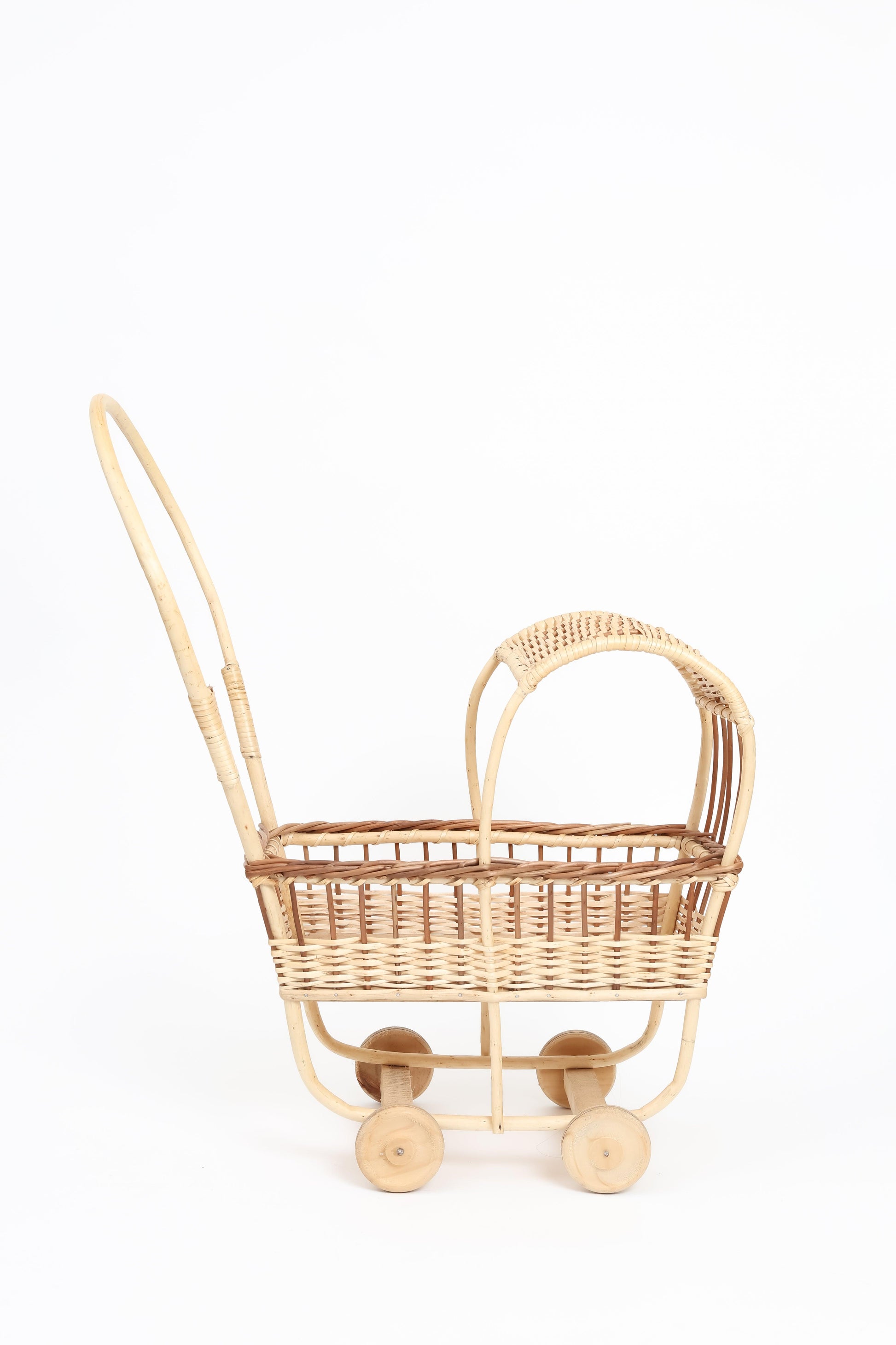 Ideal para pasear muñecas o peluches favoritos, pero también para convertirse —según la imaginación del niño— en carrito de mercado, nave espacial o lo que sueñen ese día. Su materialidad noble y atemporal lo convierte en un objeto que puede pasar de generación en generación.