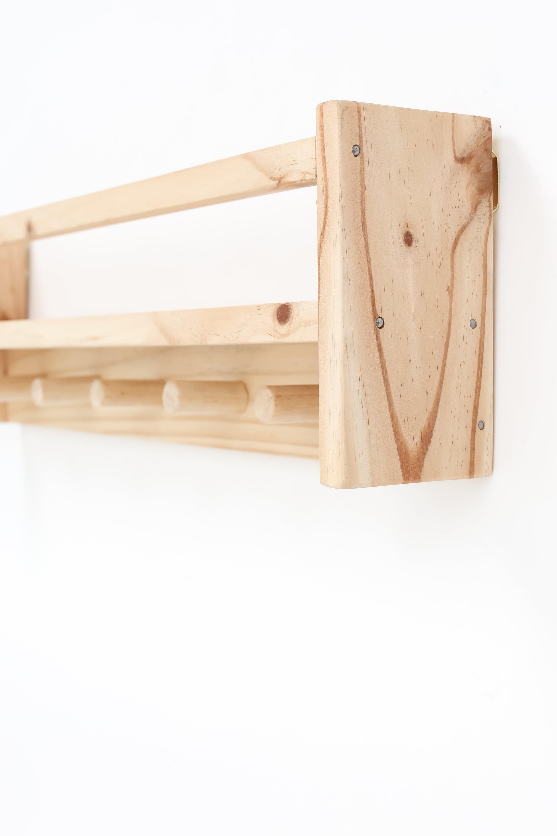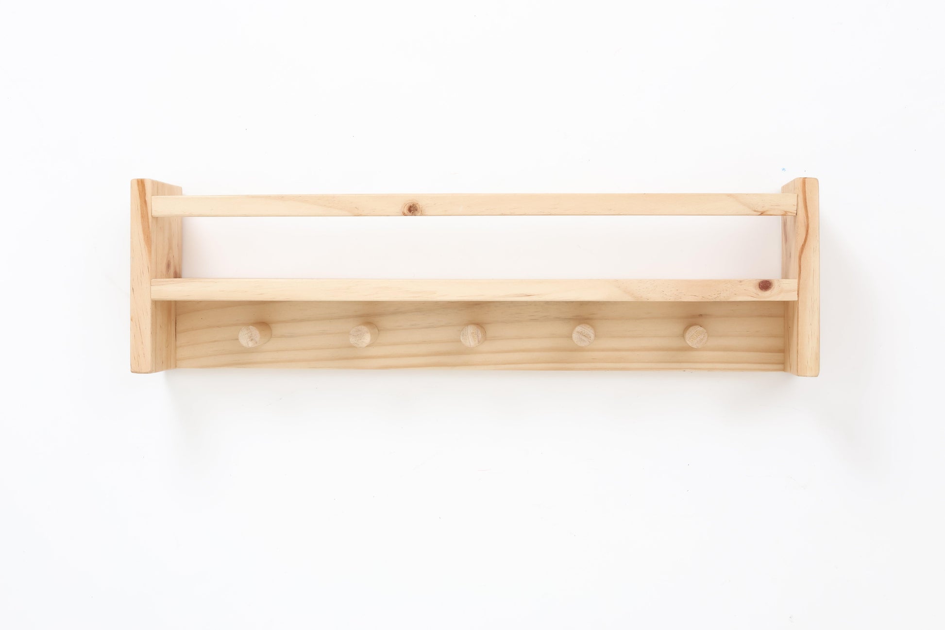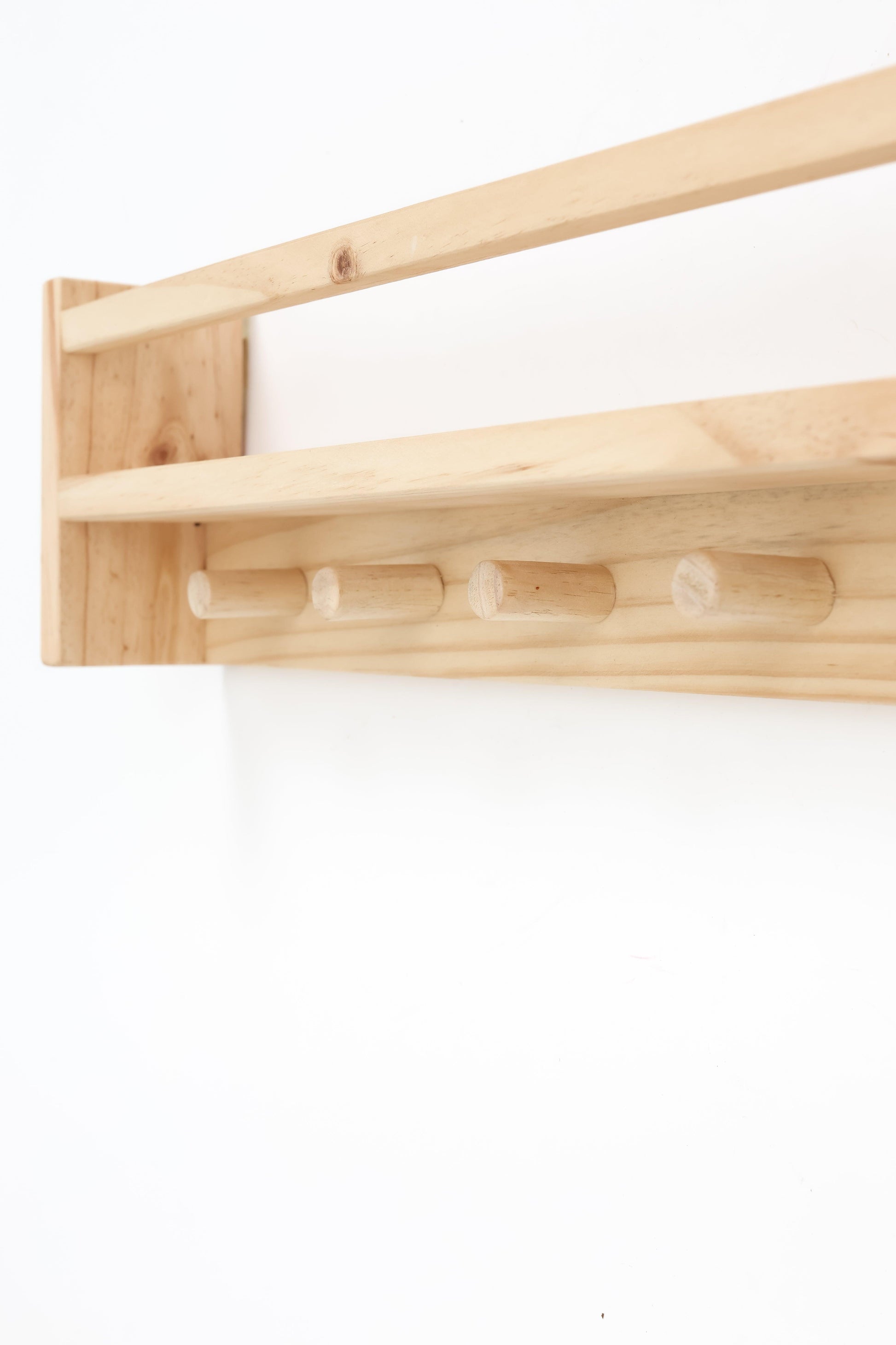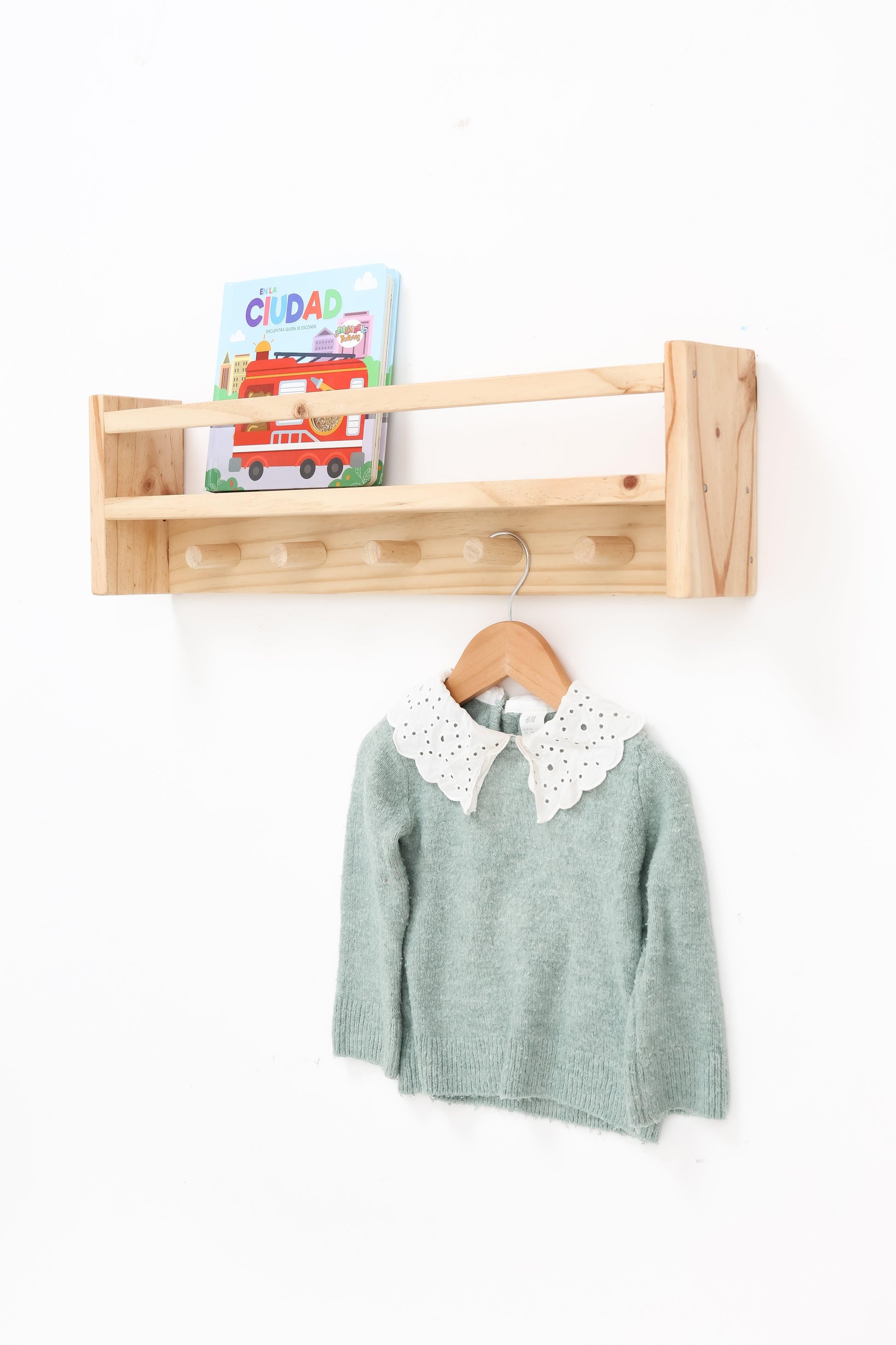 Repisa Perchero de Madera – Organizador Infantil con colgadores (60 cm)